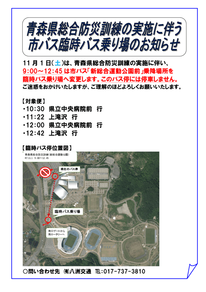 11月1日(土)新青森県総合運動公園にて青森県総合防災訓練が行われます。